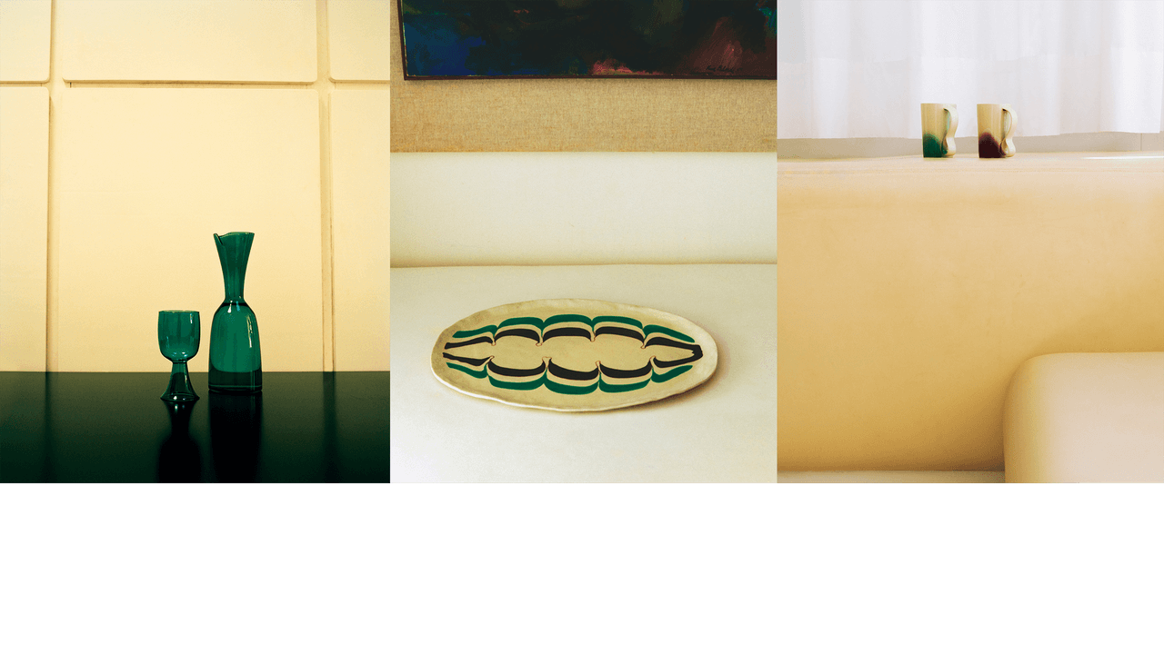 From elongated lamps to supersize platters, sculptural tablewares to sumptuous throws, the palette is rich and earthy, the decoration painterly, the silhouettes fluid and the finishes irresistibly tactile. Each design is a striking stand-alone piece; together they knit into a finely crafted, uniquely covetable collection.